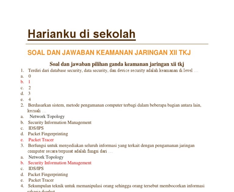 Bagi anda yang mencari contoh soal html pilihan ganda maupun essay berikut ini artikel yang tepat, apalagi jika anda baru mengenal html dan sedang belajar untuk menghadapi ujian tengan semester atau akhir semester. We would like to show you a description here but the site won't allow us. May 12, 2013 · contoh soal pilihan ganda sistem keamanan komputer sunday, 12 may 2013 5comments 1.salah satu point pada tujuan keamanan komputer di ketersediaan adalah mengurangi resiko karena kerusakan baik sengaja atau tidak atau disebut dengan: Contoh soal saham dan obligasi beserta jawabannya soal pilihan ganda saham dan obligasi. Contoh soal obligasi dan penyelesaiannya.